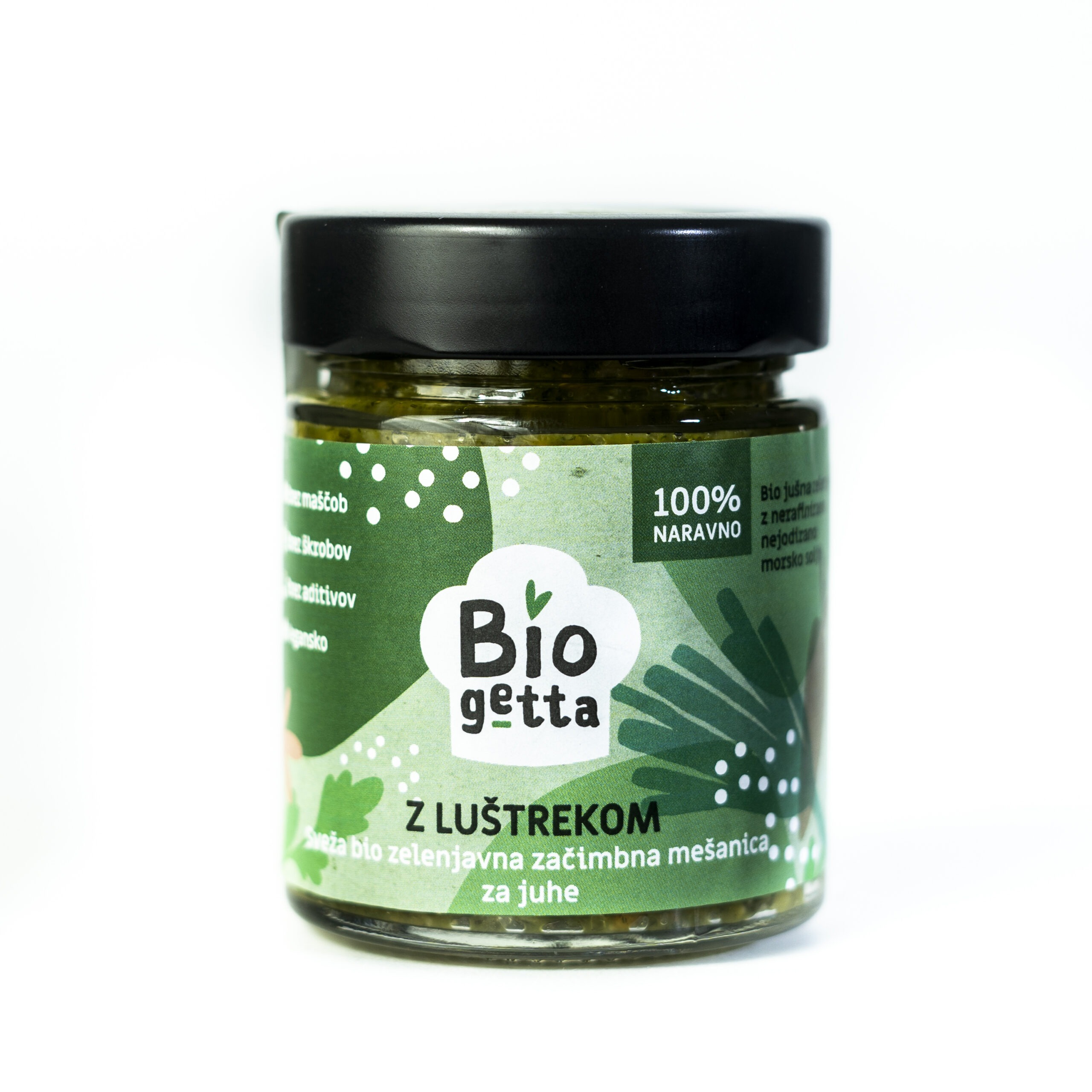 Biogetta je naravna mešanica sveže ekološke zelenjave in ročno pobrane tradicionalne morske soli, ki ti olajša pripravo zdravih in okusnih obrokov. Zdaj smo ji dodali še kanček luštreka, tako da je še posebej odlična pri vseh vrstah juh.