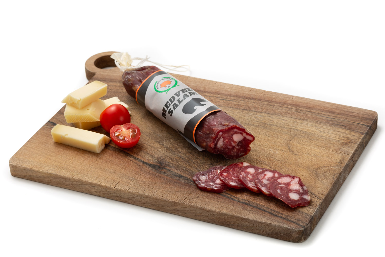 Medvedja salama je izredna kulinarična posebnost. Salama vsebuje dobro tretjino mesa medveda, ostalo je svinjsko meso in slanina. Salama je prekajena, kar okus in aromo samo še povzdigne. Medvedja salama je zelo iskana, zdaj imate priložnost.