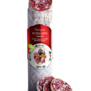 Sestavine: svinjsko meso, črni poletni tartuf (Tuber aestivum Vitt.) min. 3%, mlečni proteini.