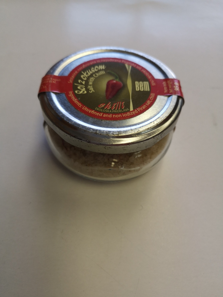 Sestavine: nerafinirana in nejodirana Piranska sol, ekološki čili.