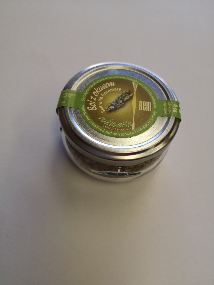 Sestavine: nerafinirana in nejodirana Piranska sol, ekološki rožmarin.